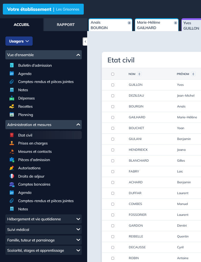 Que vos établissements soient de mêmes types ou de types différents, Softi permet de construire la solution adéquate, avec une seule et unique base de données partagées par tous. Ceci facilitera considérablement le pilotage de l'activités de l'ensemble de votre organisme et le transfert de dossiers d'un établissement à un autre.